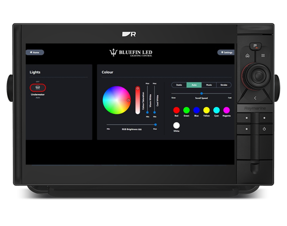 - Seamless Integration: Links Bluefin LED's advanced underwater lights directly to the vessel's Multi-Function Display (MFD), Smart Phone or Tablet.